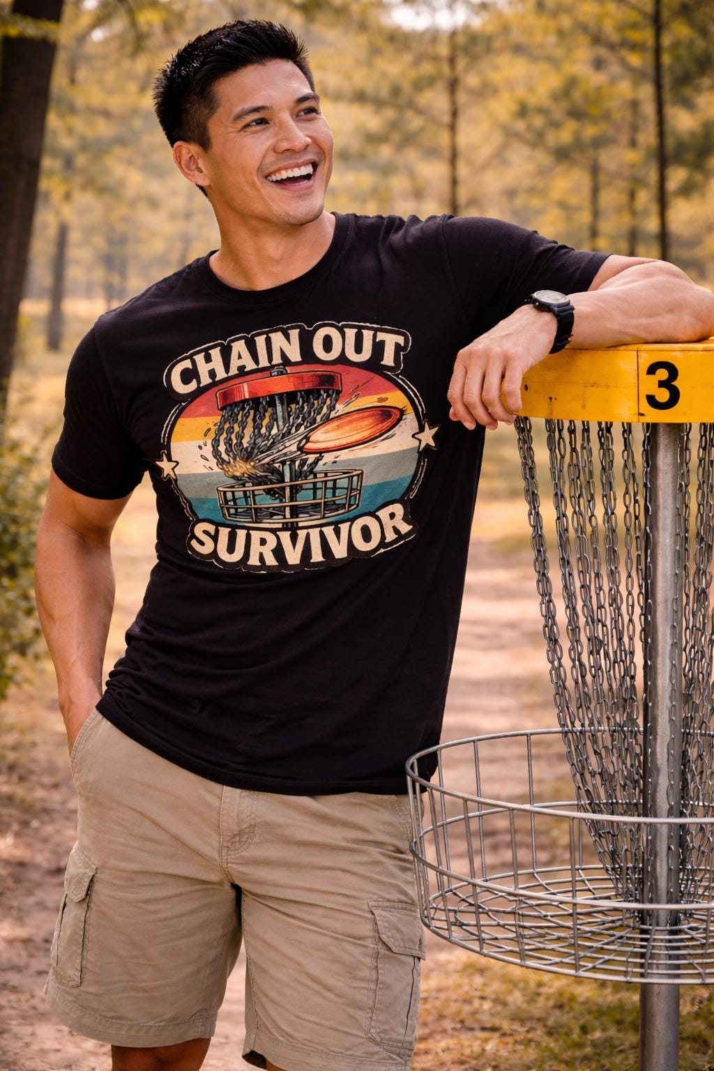 This âChain Out Survivorâ disc golf shirt is for players who have felt the heartbreak of a perfect putt that just wonât stick. Whether it bounced out, spit through, or somehow found a way to miss â this design captures one of the most relatable moments in disc golf.